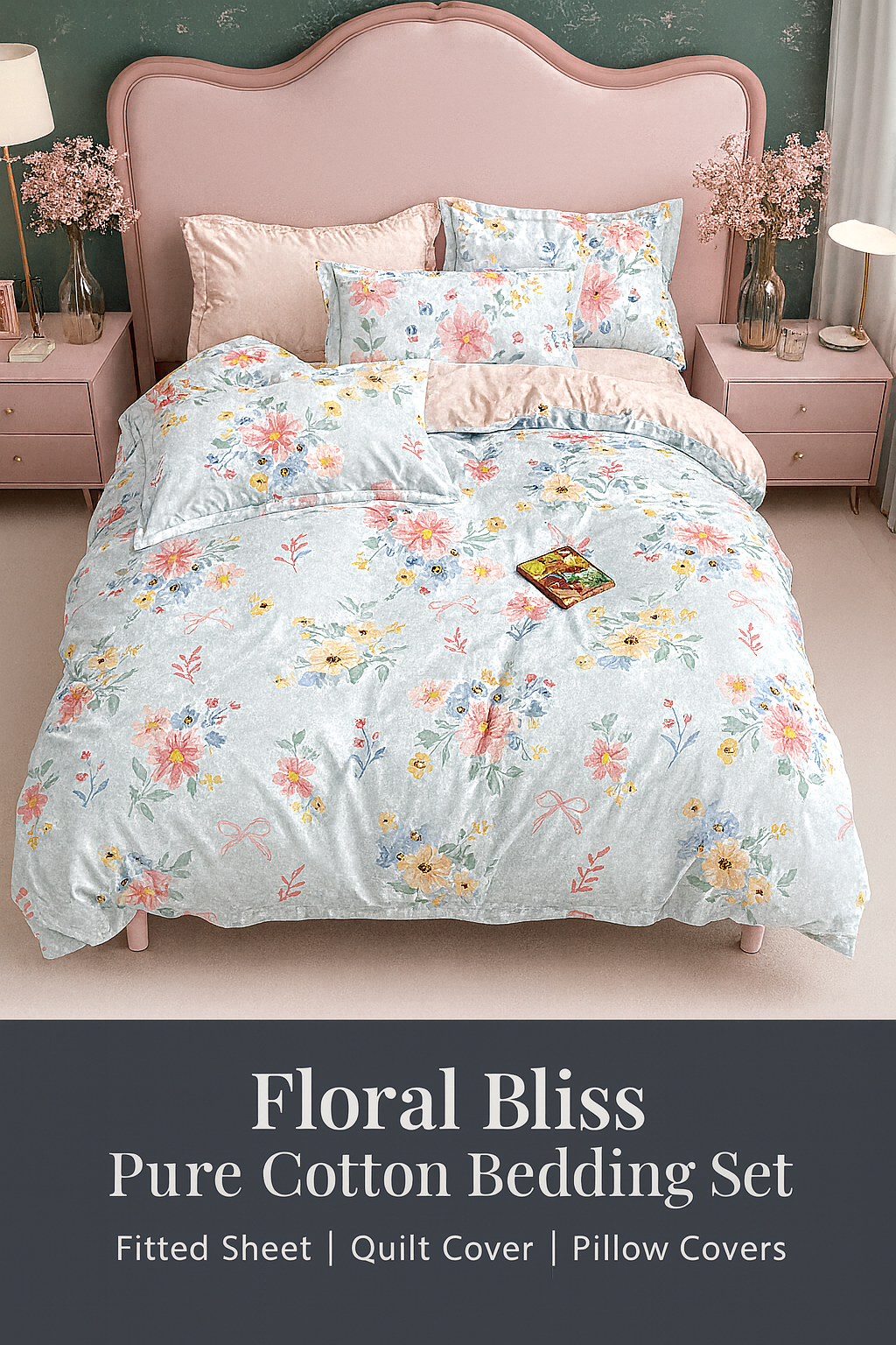 Add charm and comfort to your bedroom with the Floral Bliss Pure Cotton Bedding Set, designed to bring freshness, softness, and elegance to your space.