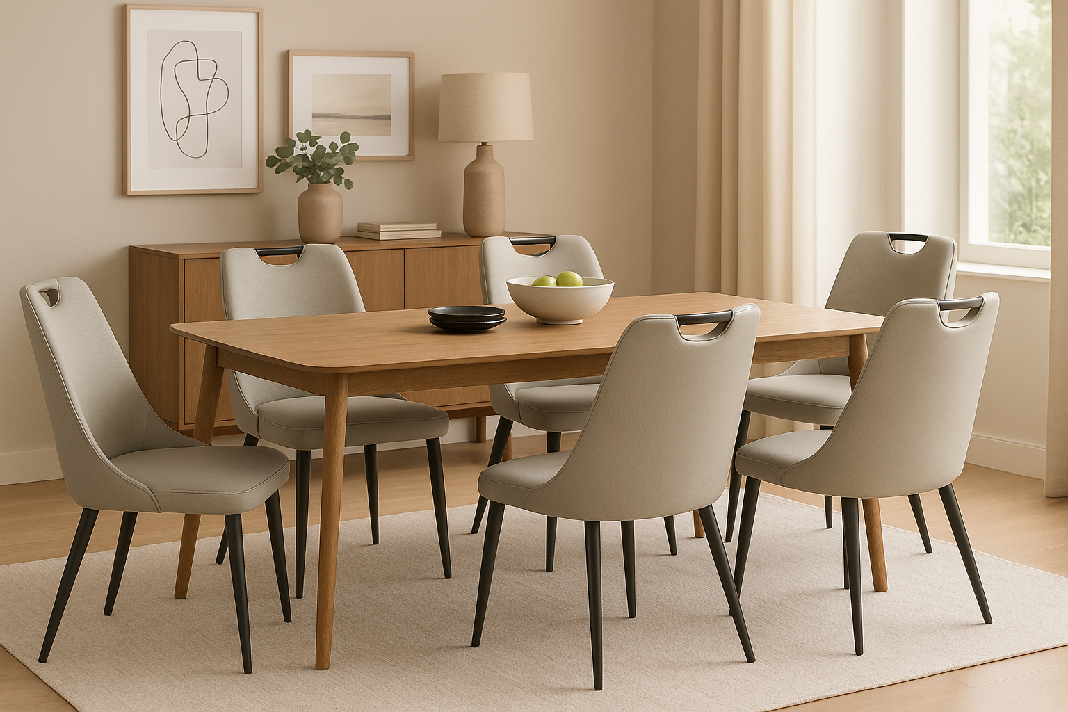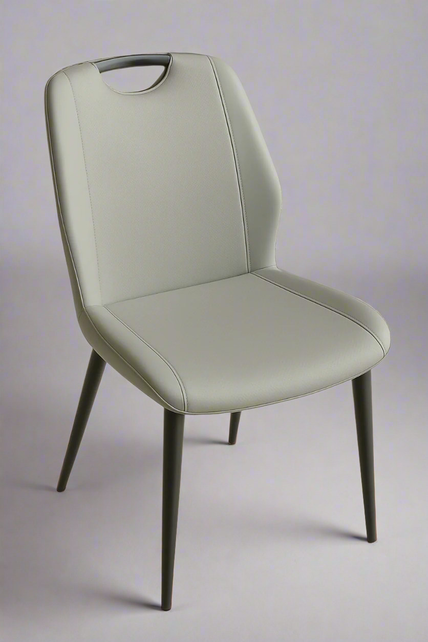 This sleek dining chair combines contemporary design with everyday comfort. Upholstered in premium light grey PU leather, it features a smooth, perforated texture for breathability and easy maintenance. The gently contoured seat and backrest provide ergonomic support, while the integrated cut-out handle adds a stylish touch and practical convenience for moving the chair with ease.