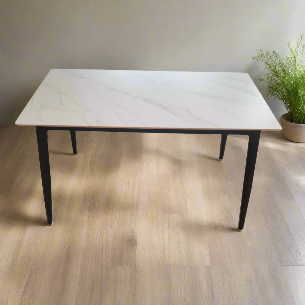 Bring clean sophistication to your dining or workspace with the Modern Snow White Marble Dining Table. Designed with minimalism in mind, this table features a matte-finish tabletop with a striking snow-white marble effect. Its rectangular silhouette and slim black metal legs create a crisp, modern profile perfect for contemporary spaces.
