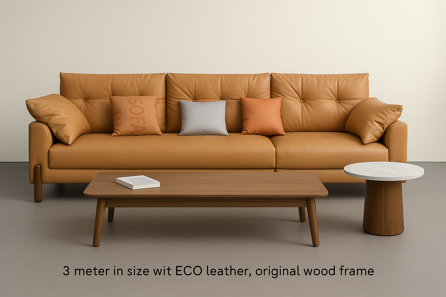 Experience unmatched comfort and sophistication with our 3-meter premium sofa, designed to bring both luxury and sustainability into your home. Upholstered in ECO leather, it offers a soft, durable, and environmentally conscious finish, while the original solid wood frame ensures strength and long-lasting stability.