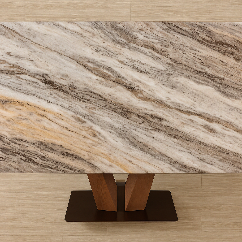 Unique Veining Pattern – A stunning mix of white, beige, and deep brown streaks, flowing in organic waves across the surface, ensuring every piece is one-of-a-kind.