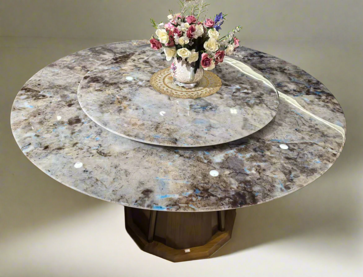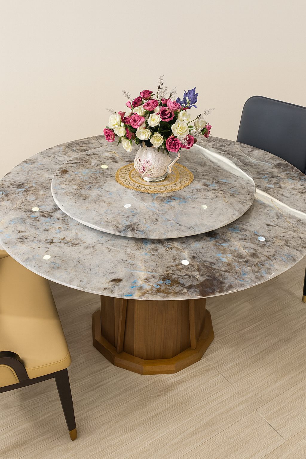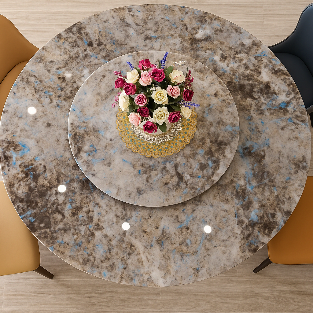 Super-Crystalline Round Marble Dining Table with Lazy Susan